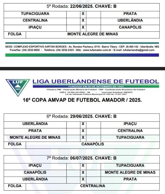 #Jogos da **5ª rodada** da Copa AMVAP 2025: